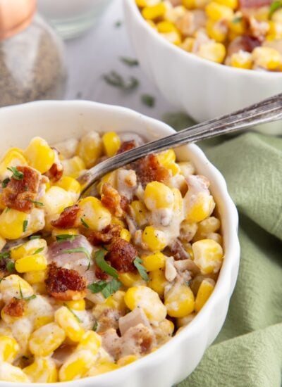 Move over plain old buttered corn; this Bacon Corn Casserole is taking over as the new favorite side dish. Smoky, rich, and creamy, it takes comfort food to the next level. Your ribs, turkey, chicken, roast beef, and ham will never be the same without it.