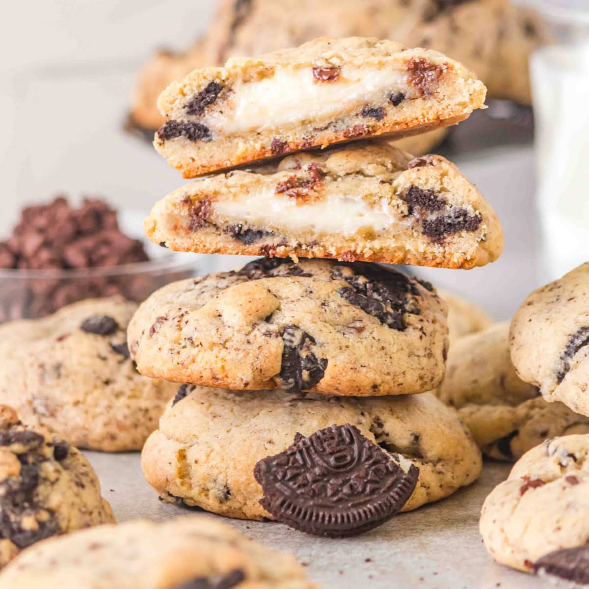 These Cheesecake Oreo Cookies are soft, sweet, and packed with crunchy Oreo pieces. They also have a little surprise inside, as they are stuffed with cheesecake, making them absolutely divine. Perfect for holiday trays, gifting, or everyday baking.